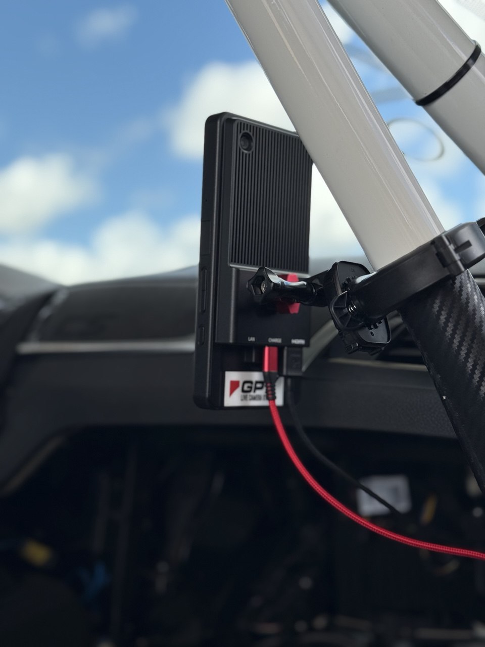 The open-wheel bundle includes self-adhesive mounts instead of roll-bar mounts, rugged metal clips, and rigid camera mounts.